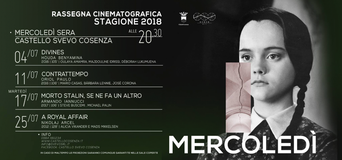 Nell’incantevole giardino del Castello Svevo di Cosenza è in programma una nuova edizione di “Mercoledì – Cinema al Castello”, rassegna cinematografica, organizzata dall’Associazione Cinepresi in collaborazione con Svevo Sr. L’evento si svolgerà tutti i mercoledì del mese di luglio – dal 4 al 25 – con la proiezione serale di un film. A dare il […]